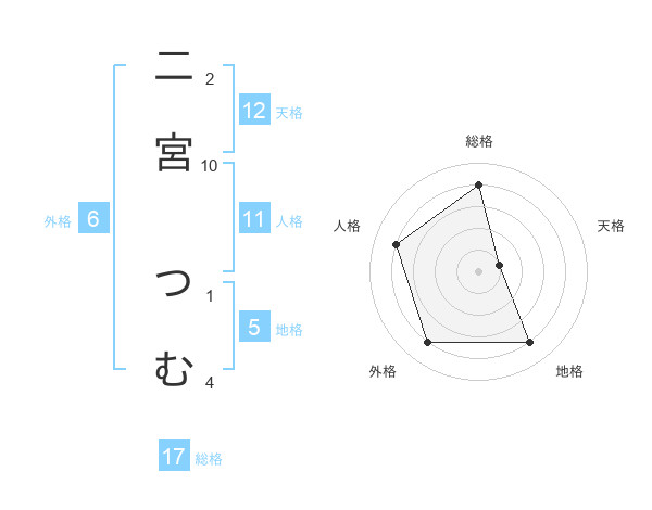 二宮 つむさんの総格は17画の4点!
