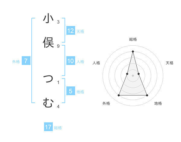小俣 つむさんの外格は7画の4点!