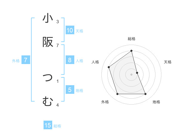小阪 つむさんの総格は15画の4点!