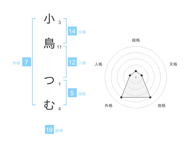 小鳥 つむさんの地格は5画の4点!