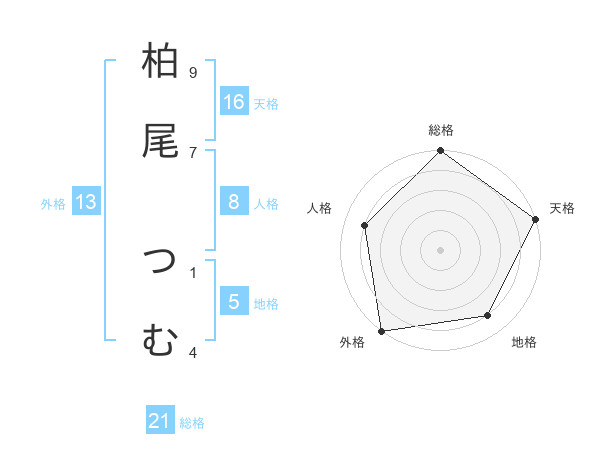 柏尾 つむさんを姓名の画数から五運を鑑定