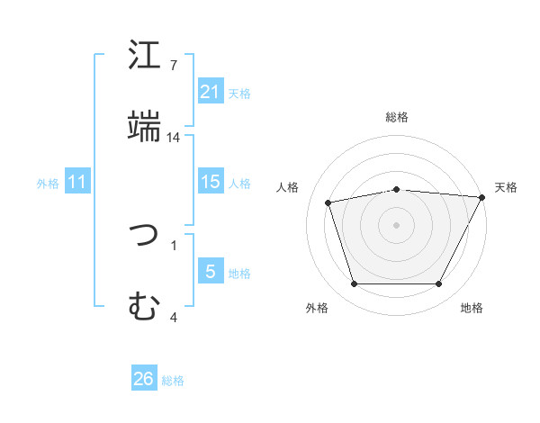 江端 つむさんの天格は21画の5点!