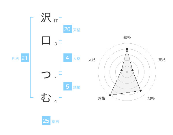 沢口 つむさんの総格は25画の4点!