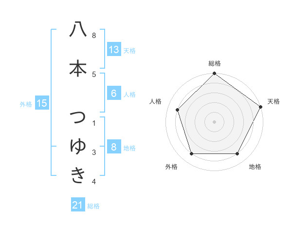 八本 つゆきさんを姓名の画数から五運を鑑定