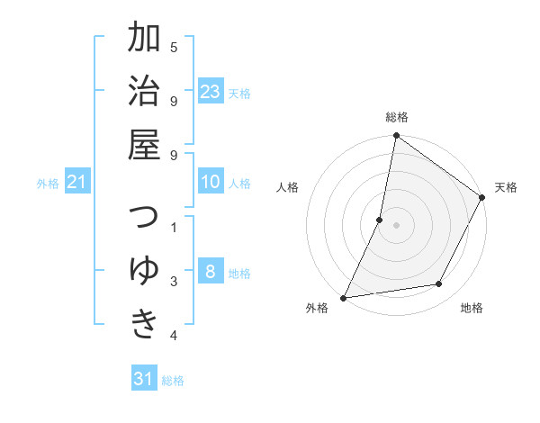 加治屋 つゆきさんの外格は21画の5点!