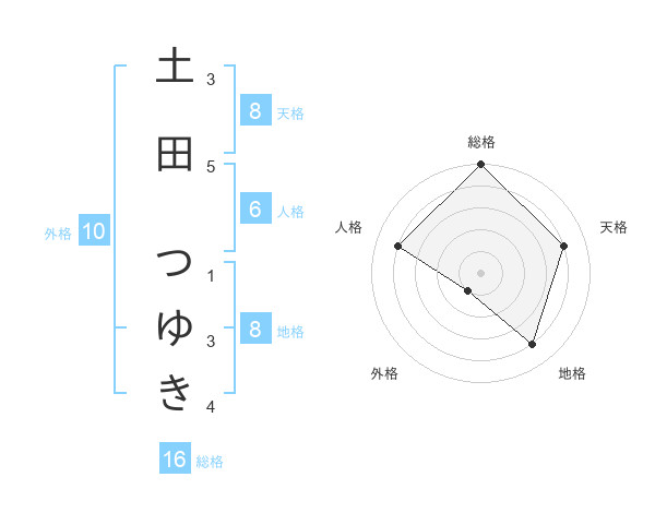 土田 つゆきさんを姓名の画数から五運を鑑定