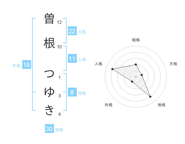 曽根 つゆきさんを姓名の画数から五運を鑑定