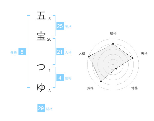 五宝 つゆさんを姓名の画数から五運を鑑定