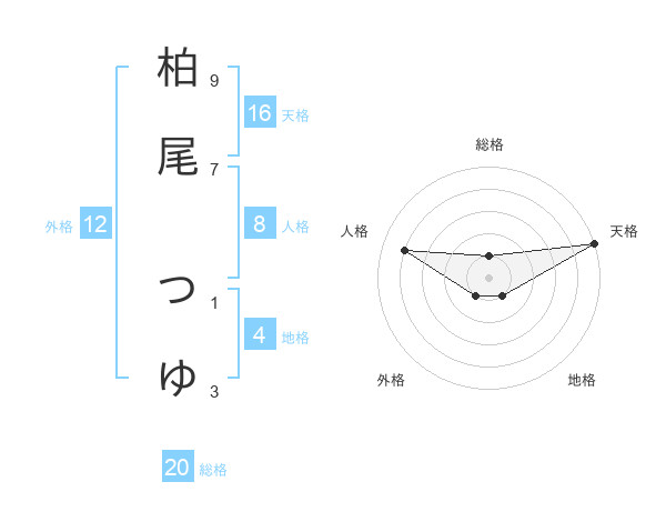 柏尾 つゆさんの天格は16画の5点!