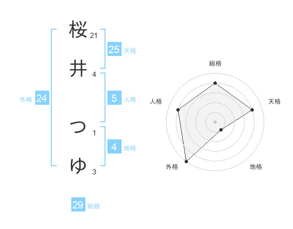 桜井 つゆさんを姓名の画数から五運を鑑定
