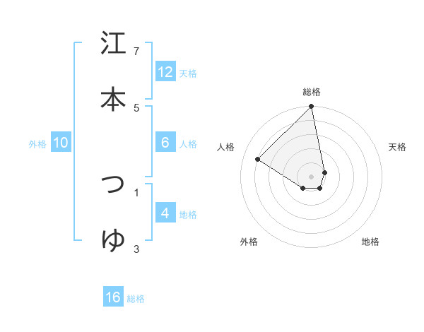 江本 つゆさんの総格は16画の5点!