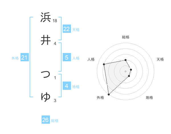 浜井 つゆさんを姓名の画数から五運を鑑定