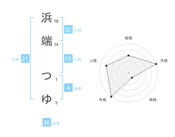 浜端 つゆさんの天格は32画の5点!
