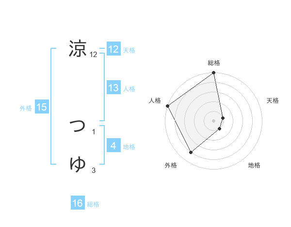 涼 つゆさんの外格は15画の4点!