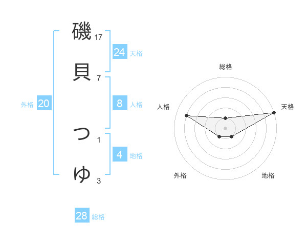 磯貝 つゆさんの天格は24画の5点!
