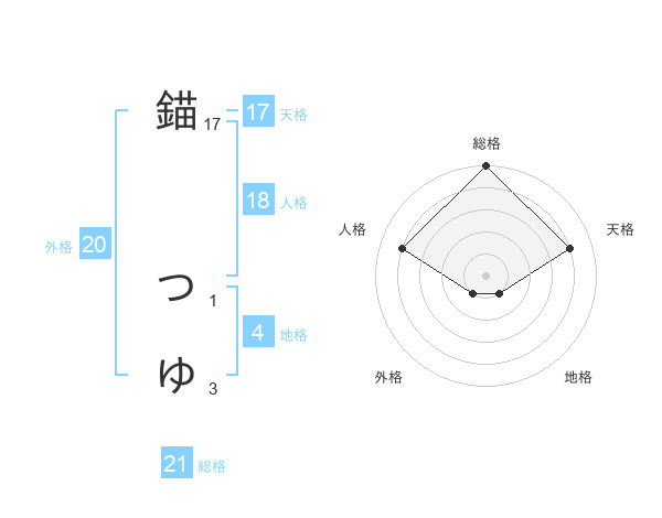 錨 つゆさんの天格は17画の4点!