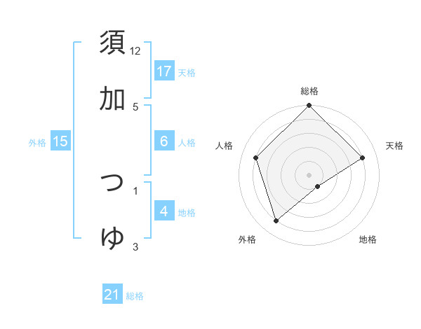 須加 つゆさんの総格は21画の5点!