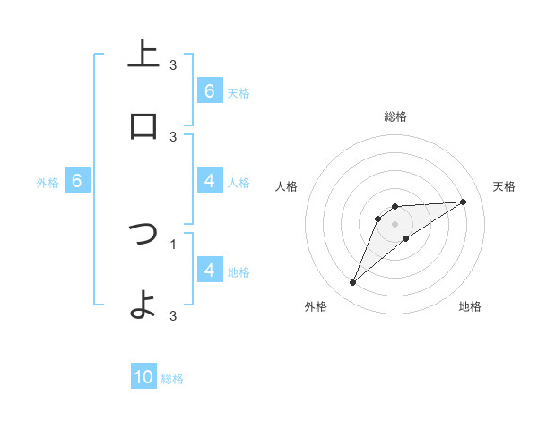 上口 つよさんの天格は6画の4点!
