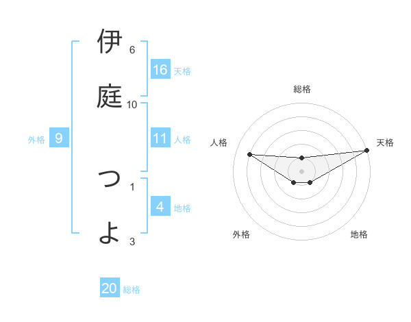 伊庭 つよさんを姓名の画数から五運を鑑定