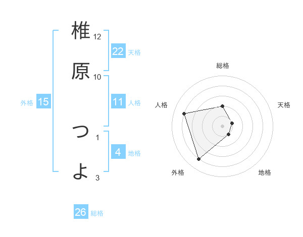 椎原 つよさんの総格は26画の2点!