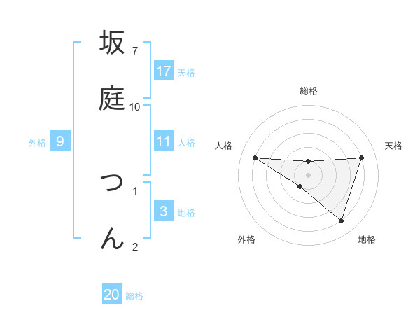 坂庭 つんさんの天格は17画の4点!
