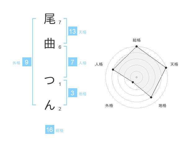 尾曲 つんさんの天格は13画の5点!