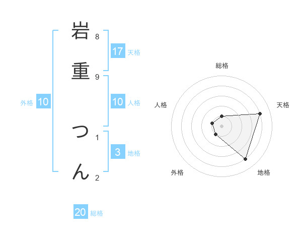 岩重 つんさんの天格は17画の4点!