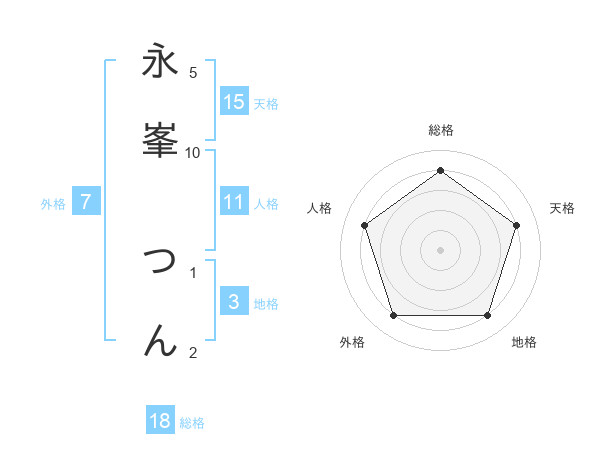 永峯 つんさんの天格は15画の4点!