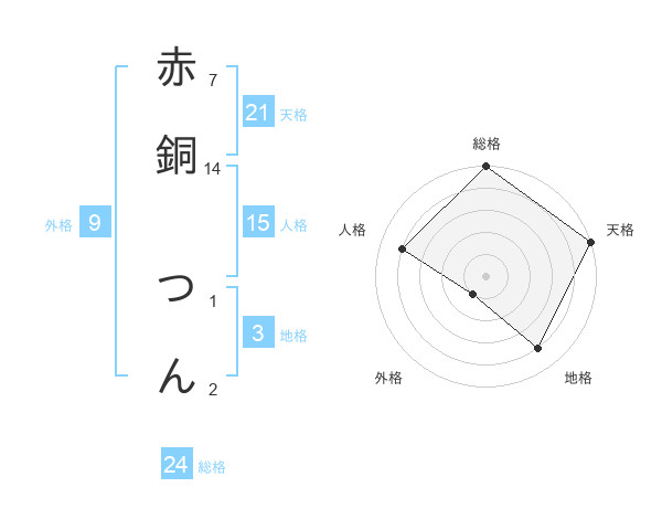 赤銅 つんさんを姓名の画数から五運を鑑定