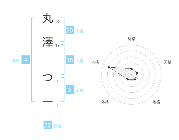 丸澤 つーさんの天格は20画の1点!
