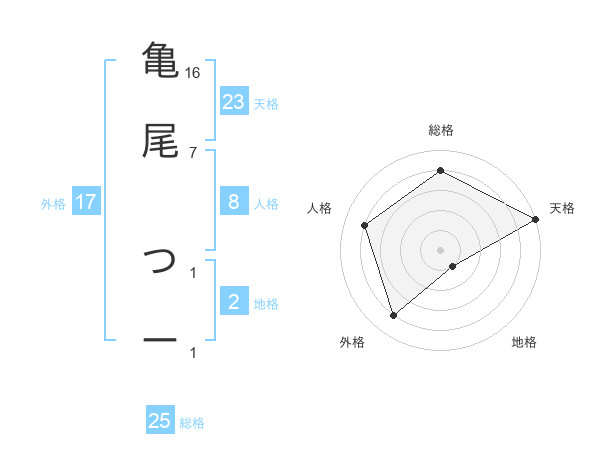 亀尾 つーさんを姓名の画数から五運を鑑定