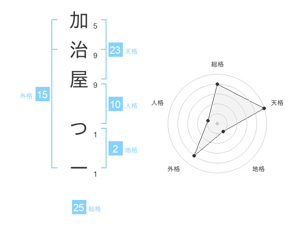 加治屋 つーさんを姓名の画数から五運を鑑定