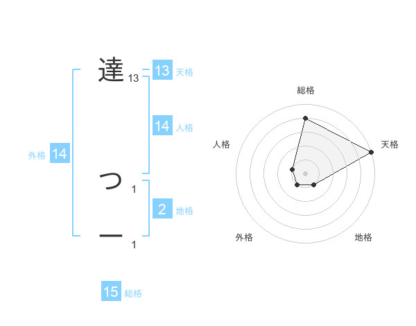 達 つーさんの天格は13画の5点!