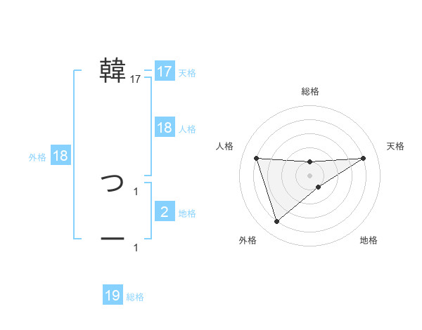 韓 つーさんの天格は17画の4点!