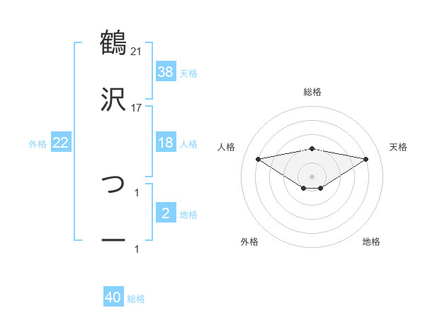 鶴沢 つーさんの天格は38画の4点!
