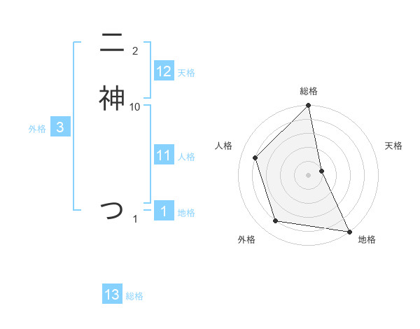 二神 つさんの総格は13画の5点!