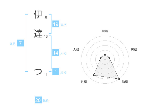 伊達 つさんの総格は20画の1点!