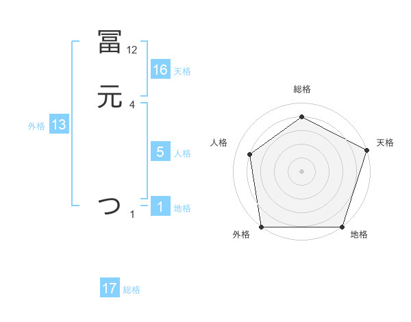 冨元 つさんの外格は13画の5点!