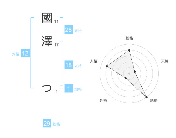 國澤 つさんの総格は29画の4点!