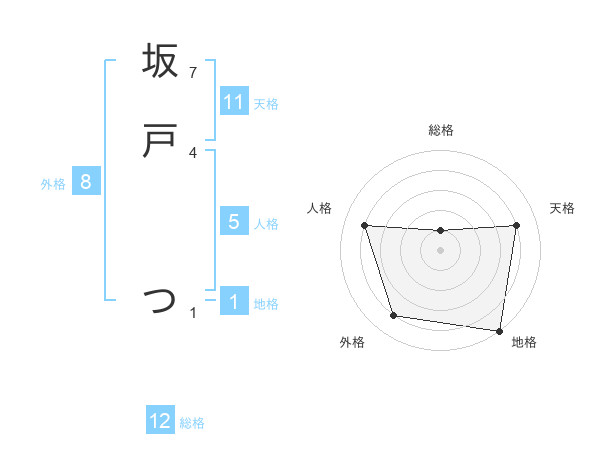 坂戸 つさんの総格は12画の1点!