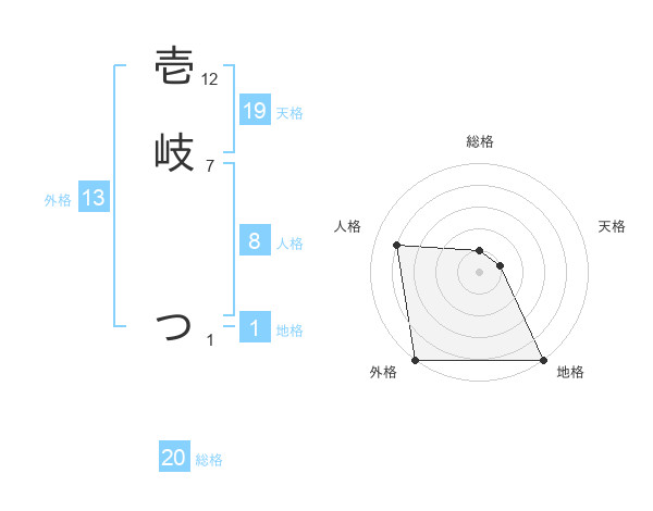 壱岐 つさんの総格は20画の1点!