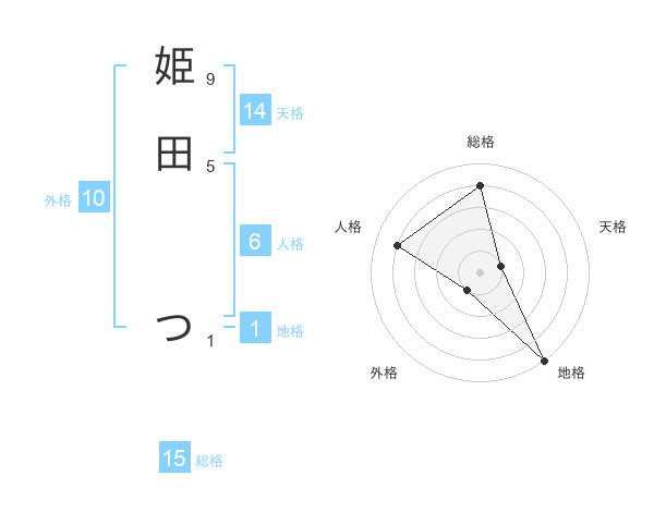 姫田 つさんの総格は15画の4点!