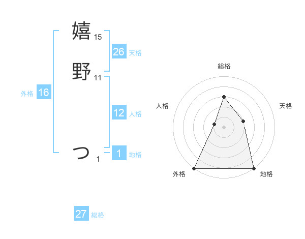 嬉野 つさんの外格は16画の5点!