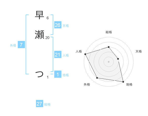 早瀬 つさんの総格は27画の3点!