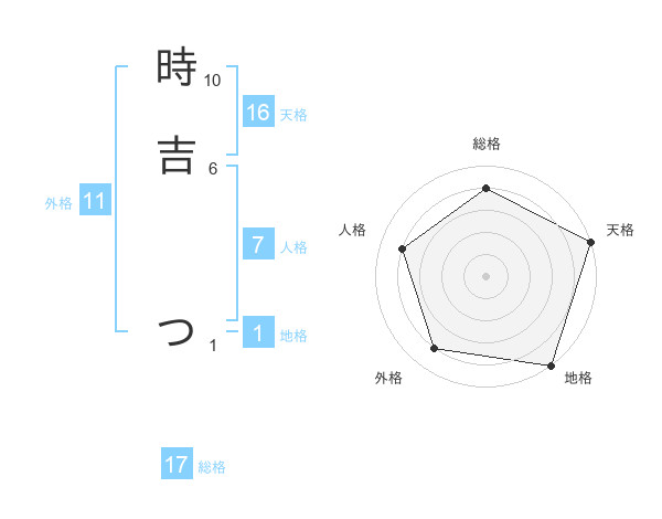 時吉 つさんの天格は16画の5点!