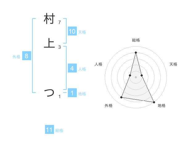 村上 つさんの総格は11画の4点!