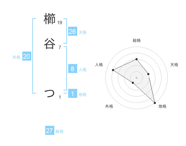 櫛谷 つさんの総格は27画の3点!