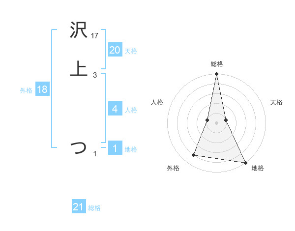 沢上 つさんの総格は21画の5点!