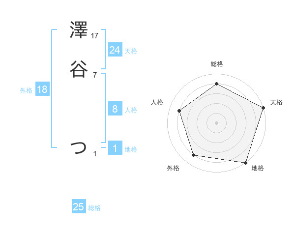 澤谷 つさんの天格は24画の5点!