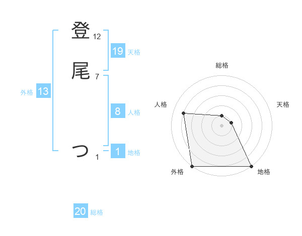 登尾 つさんの外格は13画の5点!